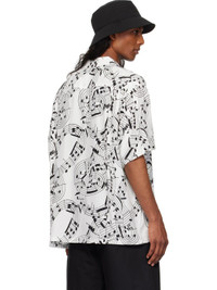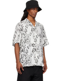 Plain-woven rayon shirt. Graphic pattern printed throughout. · Open spread collar · Button closure · Patch pocket · Twin pleats at back yoke Supplier color: White x black 100% rayon. Made in Japan 251970M192005