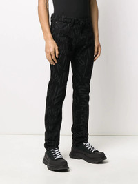 x Disney scribble printed trousers Black cotton x Disney scribble printed trousers from Takahiromiyashita The Soloist featuring a front button fastening, belt loops, side pockets, a tapered leg, rear pockets and an all-over print. Imported Composition Calf Leather 100%, Cotton 100% SIZE & FIT Model measurements Height 6 ft 2 in(1.87 m) Bust/Chest 38.18 in(97 cm) Hips 36.61 in(93 cm) Waist 29.13 in(74 cm) FittingInformation This piece fits true to size. We recommend you get your regular size Cut for a slim fit Made with a mid-weight non-stretch fabric Washing instructions Machine Wash