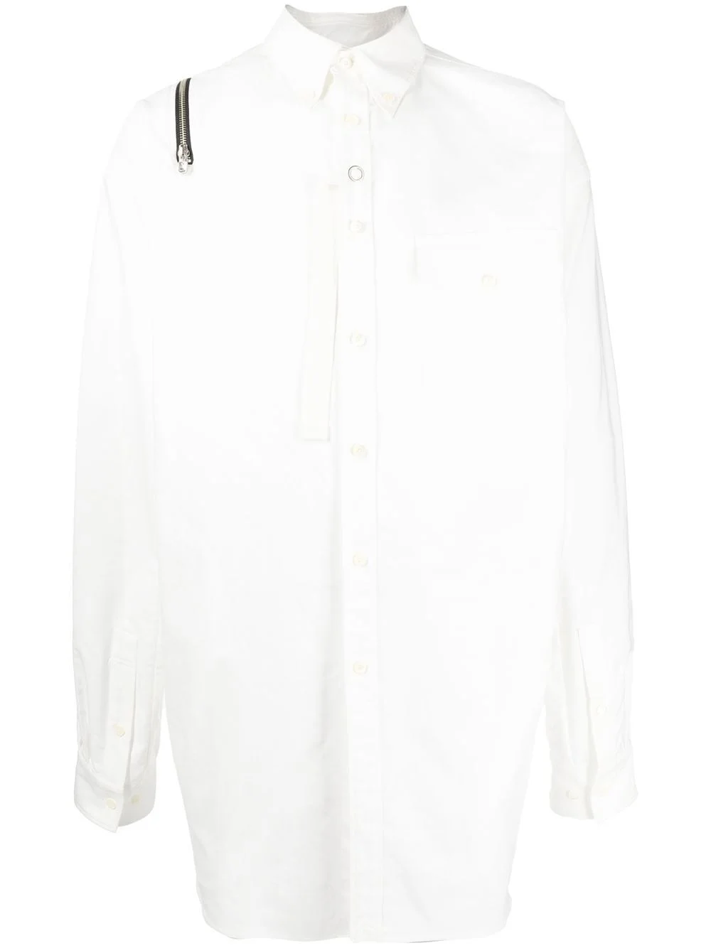 zip-detail long-sleeved shirt white cotton blend zip detail chest flap pocket front button fastening classic collar long sleeves buttoned cuffs curved hem Imported Composition Cotton 72%, Polyester 28% SIZE & FIT Model measurements Height 6 ft 3 in(1.9 m) Bust/Chest 34.64 in(88 cm) Hips 36.61 in(93 cm) Waist 27.55 in(70 cm) FittingInformation This piece fits true to size. We recommend you get your regular size Cut for an oversized fit Made with a mid-weight fabric Washing instructions Machine Wash