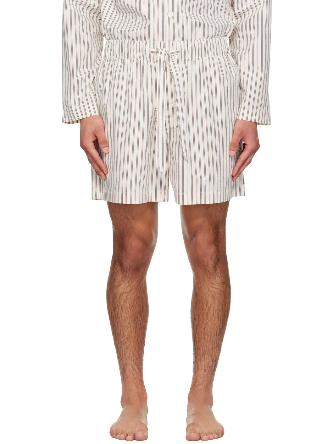 122 gsm organic cotton poplin pyjama shorts. · GOTS-certified organic cotton · Stripes throughout · Drawstring at elasticized waistband · Four-pocket styling · Button fly · Logo patch at back pocket Supplier color: Hopper stripes 100% organic cotton. Made in Portugal 261482M218014