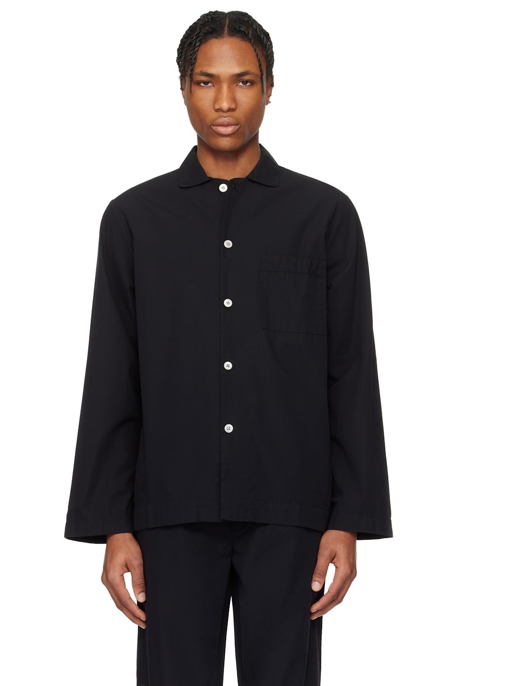 Stonewashed lightweight organic cotton poplin pyjama shirt. Oeko-Tex® Standard 100-certified. - Spread collar - Button closure - Patch pocket at chest - Logo flag at side seam - Mother-of-pearl hardware Supplier color: All black