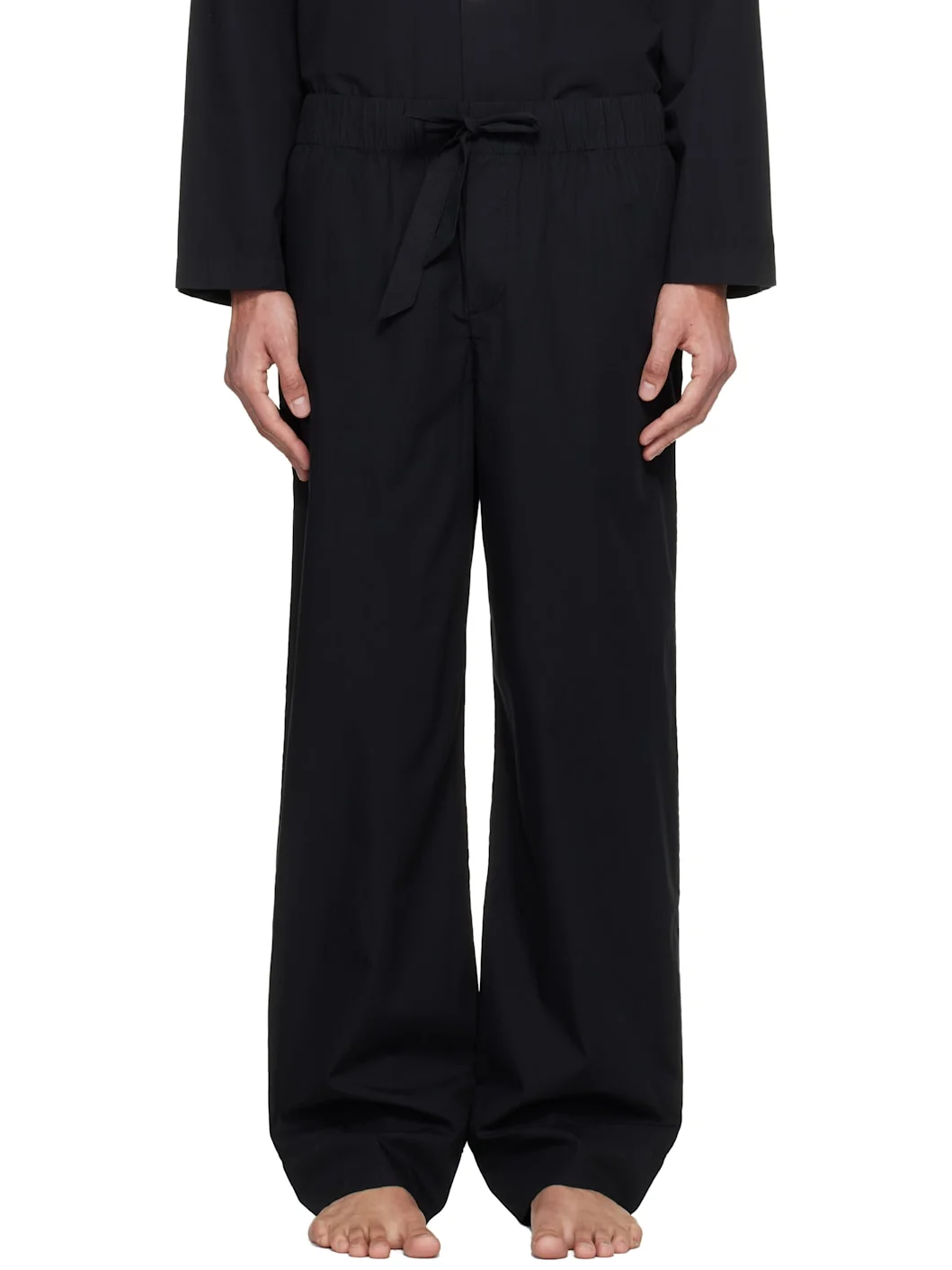 Organic cotton poplin pyjama pants. · GOTS-certified · Straight-leg · Drawstring at elasticized waistband · Three-pocket styling · Button fly · Logo patch at back pocket · Mother-of-pearl hardware Supplier color: All black 100% organic cotton. Made in Portugal 261482M218027