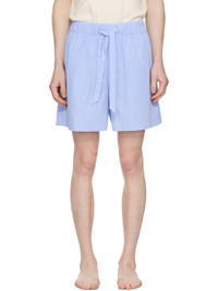 Lightweight organic cotton poplin pyjama shorts. Pinstripes throughout. · Certified OEKO-TEX® Standard 100 · Wide-leg · Stonewashed · Drawstring at elasticized waistband · Four-pocket styling · Button fly · Logo patch at back pocket · French seams at interior · Mother-of-pearl hardware Supplier color: Pin stripes 100% organic cotton. Made in Portugal 252482M218010