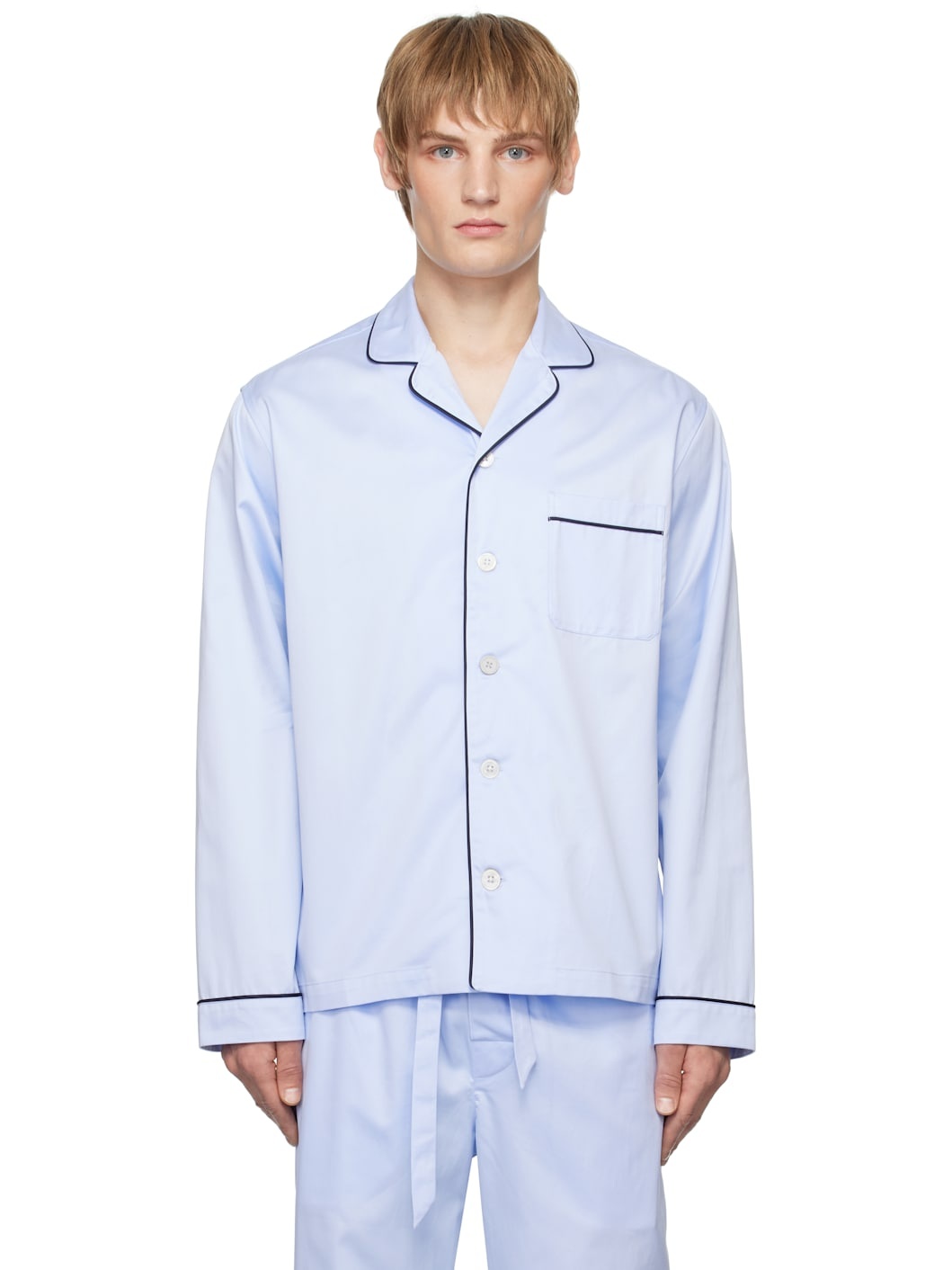 Blue Sateen Long-Sleeved Pyjama Shirt