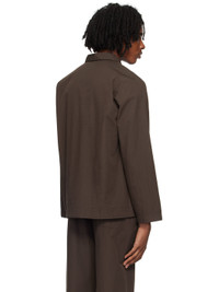 Stonewashed lightweight Oeko-Tex® Standard 100-certified organic cotton poplin pyjama shirt. · Spread collar · Button closure · Patch pocket · Logo flag at side seam · Dropped shoulders · Mother-of-pearl hardware Supplier color: Coffee 100% organic cotton. Made in Portugal 242482M218041