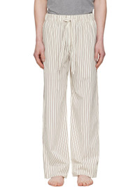 Lightweight organic cotton poplin pyjama pants. Stripes throughout. · Certified OEKO-TEX® Standard 100 · Straight-leg and loose-fit · Stonewashed · Drawstring at elasticized waistband · Three-pocket styling · Button fly · Logo patch at back pocket · French seams at interior · Mother-of-pearl hardware Supplier color: Hopper stripes 100% organic cotton. Made in Portugal 252482M218020