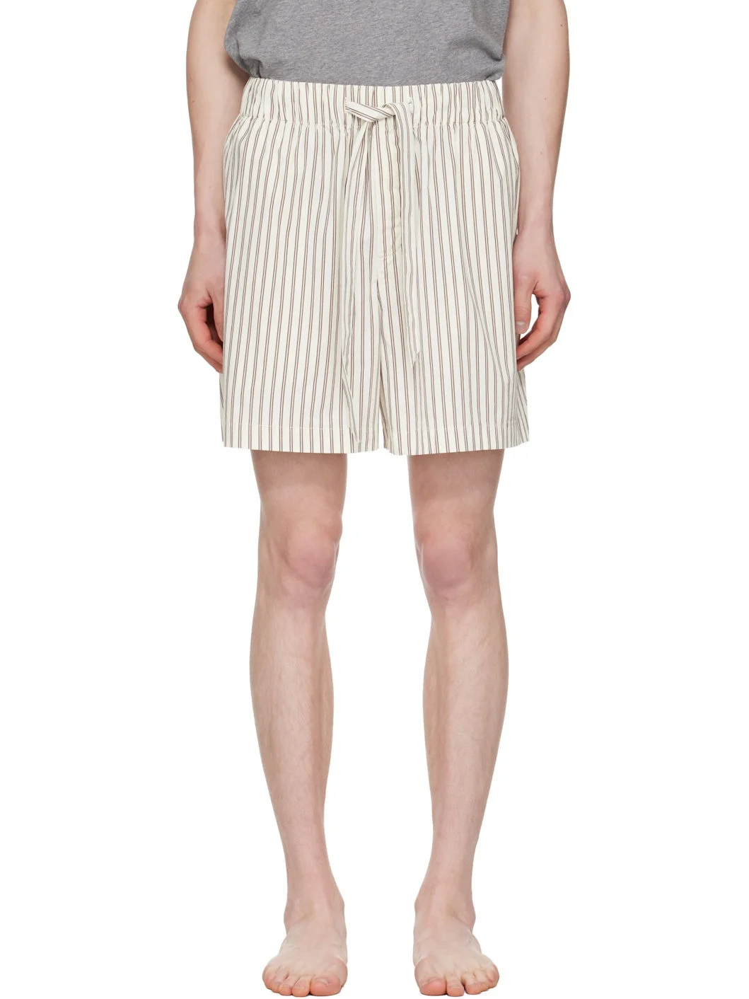 Lightweight organic cotton poplin pyjama shorts. Stripes throughout. · Certified OEKO-TEX® Standard 100 · Wide-leg · Stonewashed · Drawstring at elasticized waistband · Four-pocket styling · Button fly · Logo patch at back pocket · French seams at interior · Mother-of-pearl hardware Supplier color: Hopper stripes 100% organic cotton. Made in Portugal 252482M218012