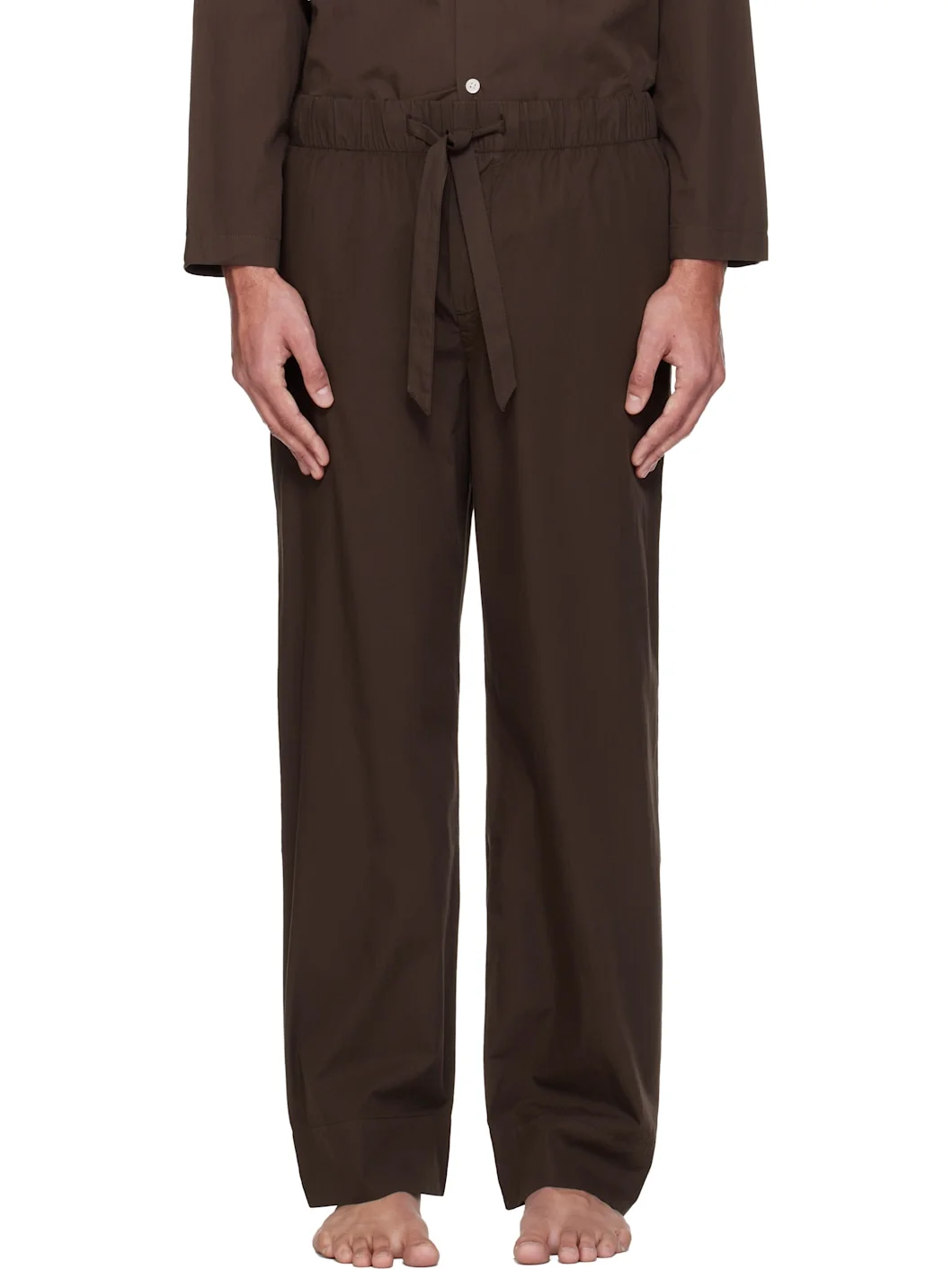 Organic cotton poplin pyjama pants. · GOTS-certified cotton · Straight-leg · Drawstring at elasticized waistband · Three-pocket styling · Button fly · Logo flag at back pocket Supplier color: Coffee 100% organic cotton. Made in Portugal 261482M218026