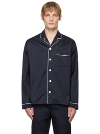 Navy Sateen Long-Sleeved Pyjama Shirt