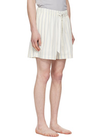 Lightweight organic cotton poplin pyjama shorts. Stripes throughout. · Certified OEKO-TEX® Standard 100 · Wide-leg · Stonewashed · Drawstring at elasticized waistband · Four-pocket styling · Button fly · Logo patch at back pocket · French seams at interior · Mother-of-pearl hardware Supplier color: Needle stripes 100% organic cotton. Made in Portugal 252482M218011