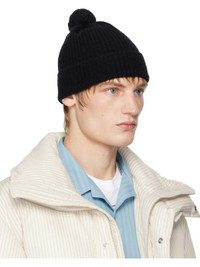 Rib-knit baby cashmere beanie in black. · Pom-pom at crown · Rolled brim Part of the Tekla + AURALEE collaboration. Available exclusively at SSENSE. Supplier color: Top black 100% cashmere. Made in Japan 251482M138001