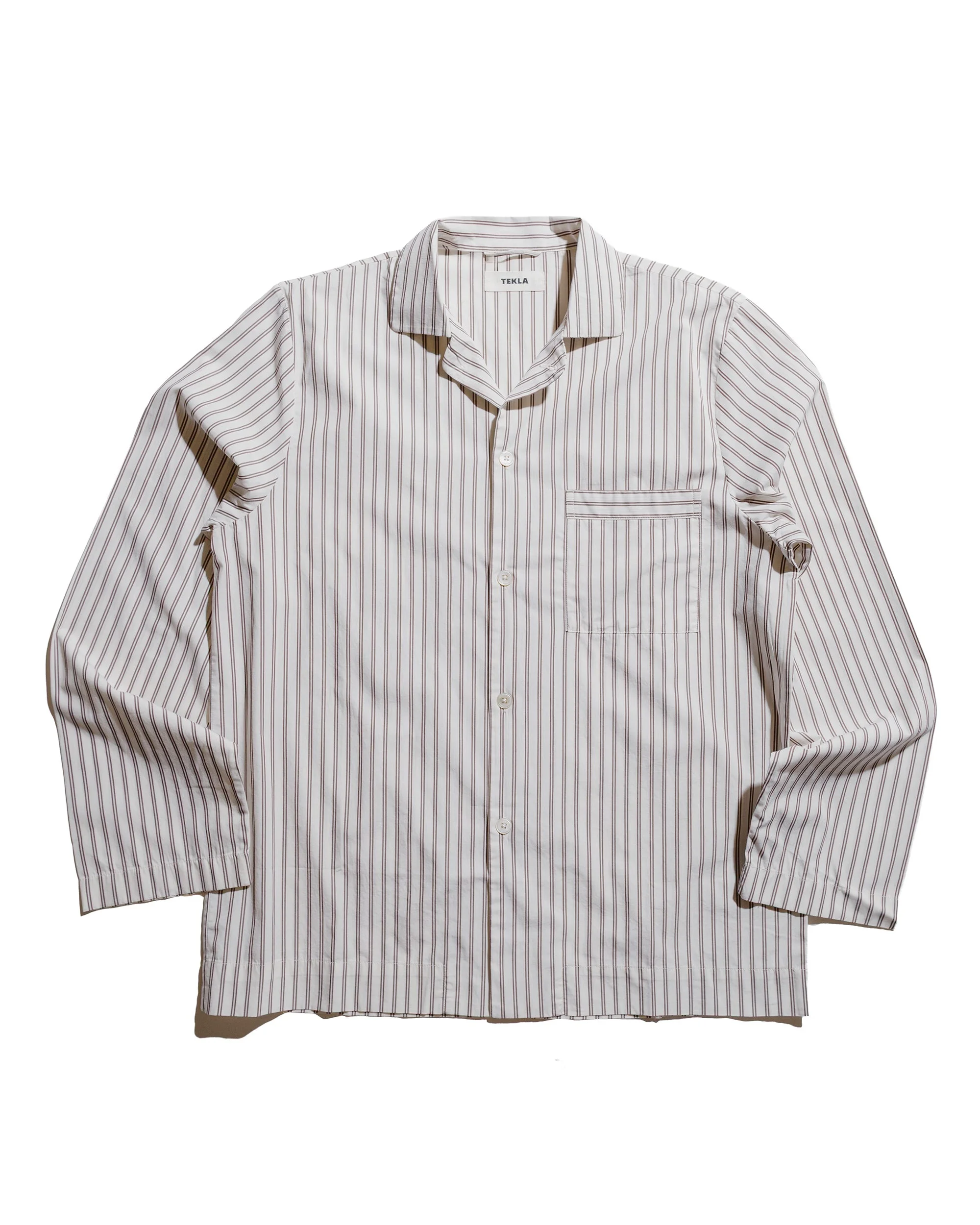 The best thing about the Tekla pyjama shirt...is that you can wear it anytime. On a date, on a a plane, in a bed, on a bed, like we said, anytime. Just ask Mark, he got one, specifically the Stussy collab and he lives in it. DETAILS - Lightly stonewashed organic cotton poplin - Round collar - Single chest pocket - Mother of pearl buttons - Oeko-Tex® Standard 100 certified - 100% organic cotton - Made in Portugal - Model is 6'0” (183cm), 150lbs (68kg) and wearing M