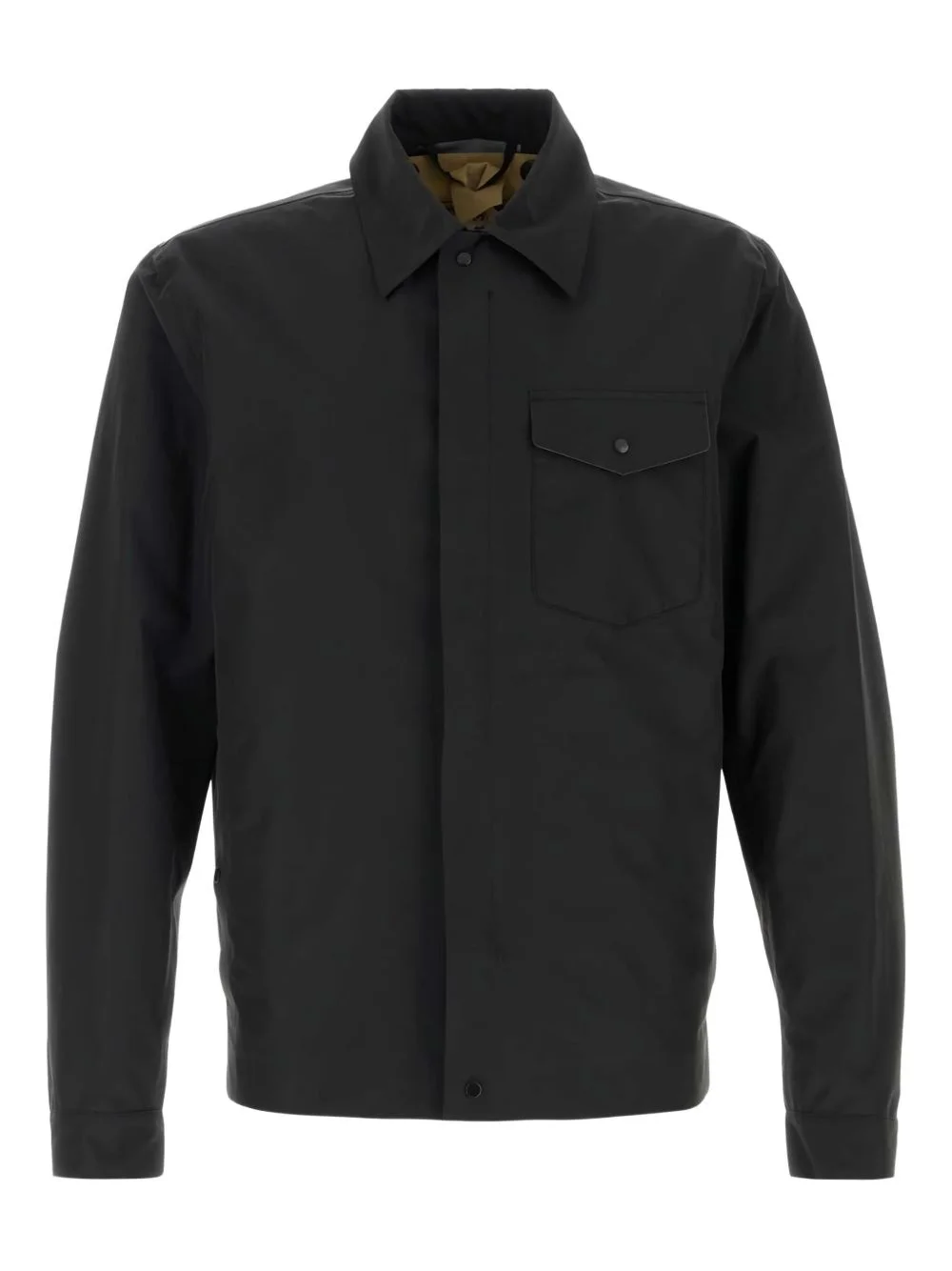 Bonded utility-pocket overshirt Highlights - Black - Single chest pocket - Button-up front - Long sleeves - Pointed collar Imported Composition Nylon 53%, Cotton 47%