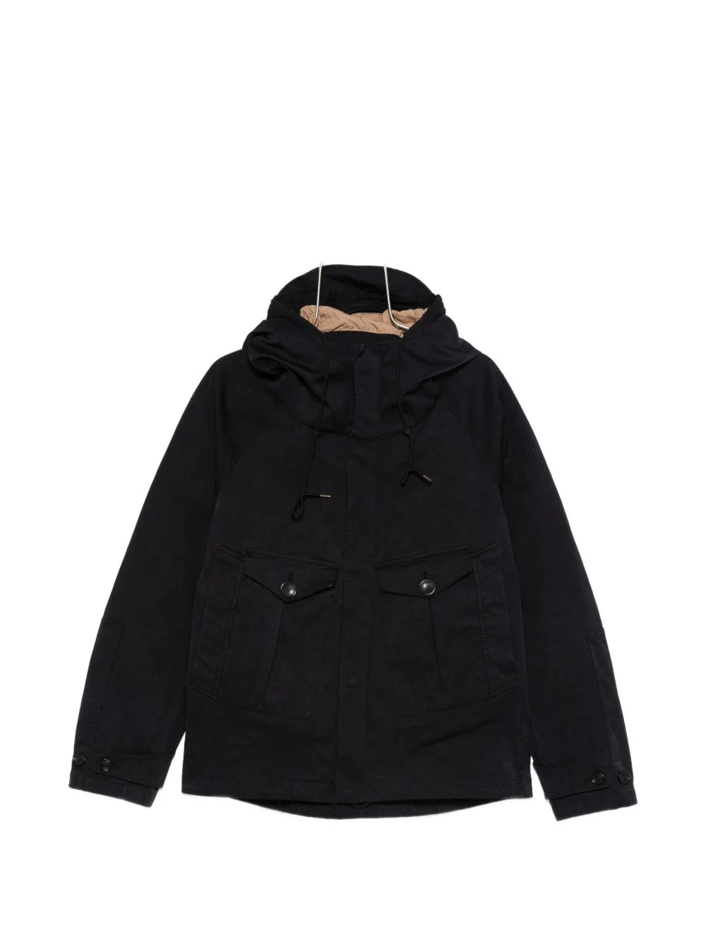 flap-pocket hooded jacket Highlights - Navy blue - Hood - Front flap-pockets - Buttoned cuffs - Drawstring hood Made in Italy Composition Outer: Polyester 60%, Nylon 40% Lining: Cotton 100% Washing instructions Machine Wash