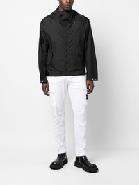 hooded lightweight jacket Highlights - Black - Drawstring hood - Long sleeves - Front zip fastening - Two side flap pockets Imported Composition Lining: Cotton 100%, Polyester 60%, Polyamide 40% Outer: Polyamide 100% SIZE & FIT Model measurements Height 6 ft 0 in(1.84 m) Bust/Chest 35.82 in(91 cm) Hips 37 in(94 cm) Waist 28.34 in(72 cm) FittingInformation Designed to be unstructured, offering a loose fit throughout The internal drawstring at the hem allows for fitted preferences Made from a midweight non-stretch fabric This piece fits true to size – take your usual size Washing instructions Dry Clean Only