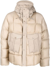 hooded padded jacket Highlights - Pale taupe - Cotton - Down-feather filling - Padded design - Panelled design - Silver-tone hardware - Drawstring hood - Front press-stud and zip fastening - Long sleeves - Straight hem - Two front patch pockets Imported Composition Lining: Polyamide 100%, Cotton 100% Duck Feathers 100% Outer: Polyamide 100% Washing instructions Dry Clean Only