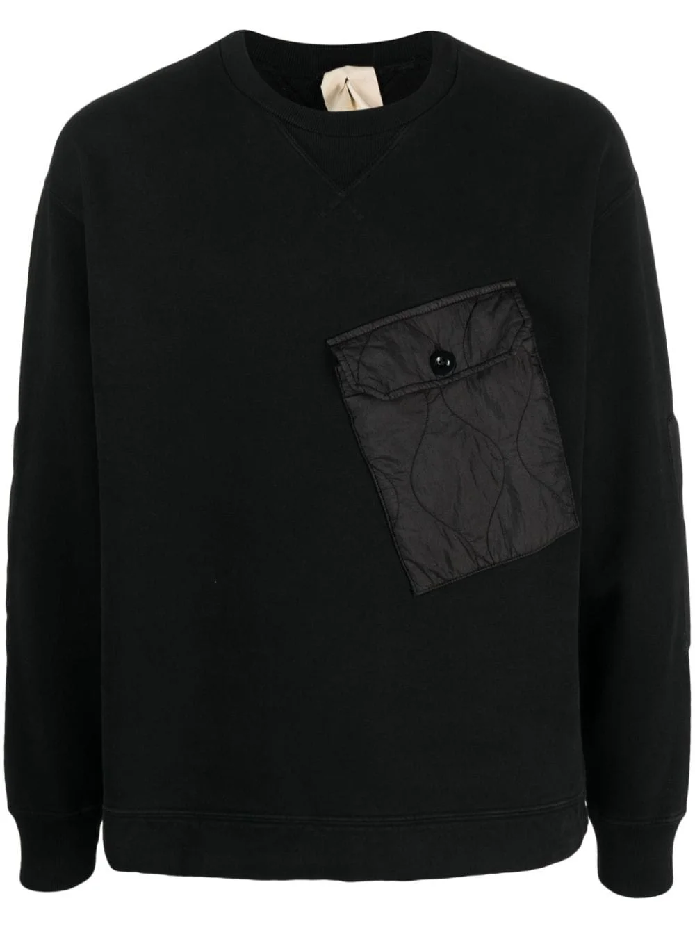 logo-patch cotton sweatshirt Highlights - Core black - Cotton - Padded panels - Contrasting panel detail - Logo patch to the rear - Crew neck - Front stud-fastening pocket - Drop shoulder - Long sleeves - Ribbed cuffs and hem Made in Italy Composition Cotton 100%, Polyester 82%, Polyamide 18%