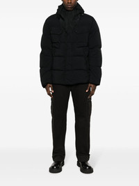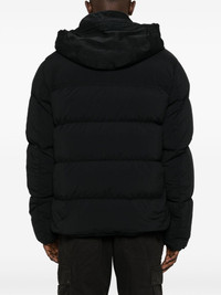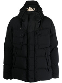 quilted padded jacket Highlights - Black - Duck down - Padded design - Quilted - Drawstring hood - Stand-up collar - Front press-stud and zip fastening - Long sleeves - Two chest flap pockets - Two press-stud fastening side pockets - Straight hem Imported Composition Lining: Polyamide 100%, Duck Down 100%, Cotton 100% Outer: Polyamide 100% SIZE & FIT Model measurements Height 6 ft 0 in(1.84 m) Bust/Chest 35.82 in(91 cm) Hips 37 in(94 cm) Waist 28.34 in(72 cm) FittingInformation Designed to be unstructured, offering a loose fit throughout The internal drawstring at the hem allows for fitted preferences Made from a padded non-stretch fabric, giving it no natural elasticity This piece fits true to size – take your usual size Washing instructions Machine Wash