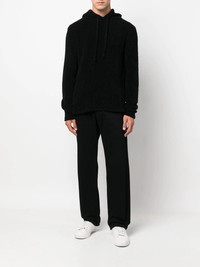 sherpa wool-blend hoodie black wool blend textured finish slouchy drawstring hood drop shoulder long sleeves pullover design Made in Italy Composition Wool 90%, Polyamide 10% SIZE & FIT Model measurements Height 6 ft 1 in(1.86 m) Bust/Chest 37.4 in(95 cm) Hips 34.64 in(88 cm) Waist 29.13 in(74 cm) FittingInformation This piece fits true to size. We recommend you get your regular size Cut for a relaxed fit Made with a mid-weight fabric