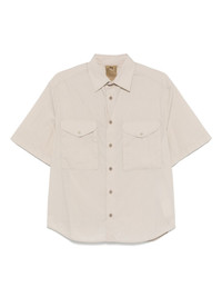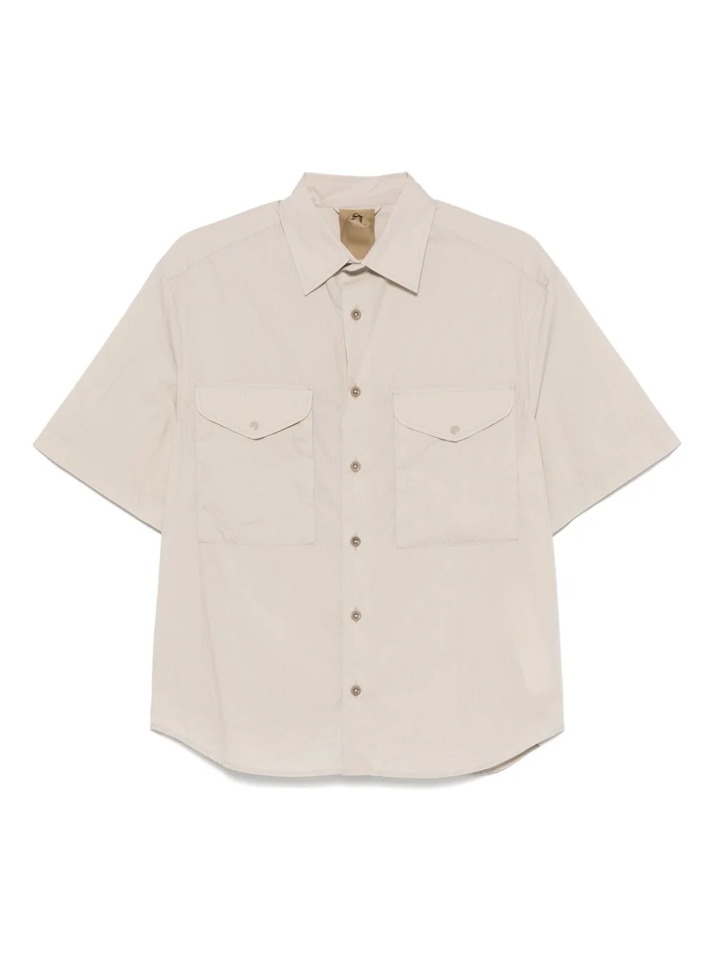 short-sleeve shirt Highlights - Light beige - Front button fastening - Two chest flap pockets - Classic collar - Curved hem Made in Italy Composition Cotton 72%, Polyamide 28%