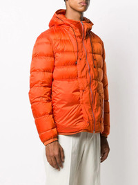 zipped padded jacket Orange feather down and cotton zipped padded jacket from Ten C featuring padded, a drawstring hood, a front zip fastening, long sleeves and side pockets. Imported Composition Outer: Cotton 100%, Polyamide 100% Lining: Feather Down 100%, Polyamide 100% SIZE & FIT Model measurements Height 6 ft 2 in(1.87 m) Bust/Chest 38.18 in(97 cm) Hips 36.61 in(93 cm) Waist 29.13 in(74 cm) FittingInformation This piece fits true to size. We recommend you get your regular size Cut for a loose fit Made with a mid-weight non-stretch fabric Washing instructions Machine Wash