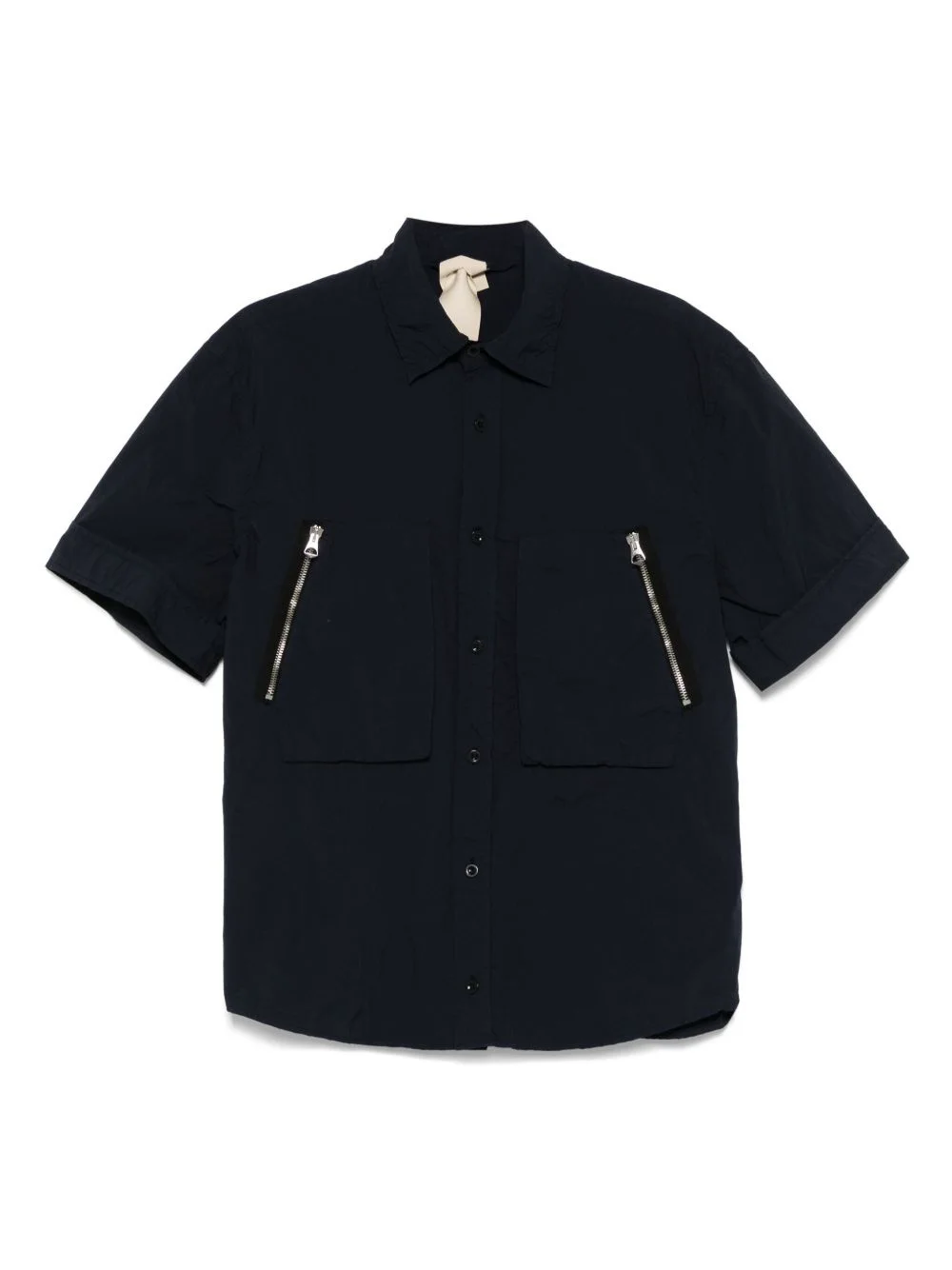 zipped-pockets shirt Highlights - Navy blue - Front button fastening - Classic collar - Short sleeves - Turn-up cuffs Imported Composition Polyamide 100%