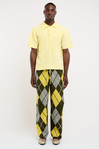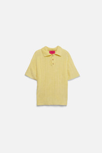 THE NEW CHENILLE GROUP IS MADE OF A VELVETY WOOL-SILK BLEND IN RICH COLORS FOR THE SEASON. OUR CHENILLE SETS ARE PERFECT FOR A DAY OF LEISURE, OR A DAY OF PLAY. KNIT ON HAND-POWERED KNITTING MACHINES IN SUNNY LOS ANGELES. - BUTTER WOOL AND SILK BLEND - SLIM FIT - SHOR SLEEVE - COLLAR WITH A 3 BUTTON CLOSURE - RIBBED AT HEM AND ARMS - MADE IN LOS ANGELES, CALIFORNIA - MODEL IS WEARING A SIZE MEDIUM MATERIAL & CARE - 38% WOOL 35% NYLON 27% SILK - LIGHT WEIGHT KNIT - THE ELDER STATESMAN'S - FULLY FASHION KNITWEAR CARE - WE RECOMMEND DRY CLEAN ONLY - TO MAINTAIN ITS ORIGINAL SHAPE PLEASE FOLD THE GARMENT, AS HANGING KNITWEAR TENDS TO DISRUPT ITS GENUINE SILHOUETTE - PILLING MAY OCCUR DUE TO THE NATURE OF THE YARN. PLEASE USE CLOTHING SHAVERS THAT ARE DESIGNED FOR KNITWEAR & CASHMERE PILLING - TO AVOID EXCESS PILLING DO NOT PULL ANY PILLS ON THE GARMENT AND DO NOT TRY TO MANUALLY CLEAN A STAIN - STORE YOUR GARMENT IN A DRY, TEMPERATURE-CONTROLLED SPACE - TO STORE OUT-OF-SEASON GARMENTS, USE ANY KNITWEAR GARMENT STORAGE TO AVOID DUST AND PESTS - AVOID DIRECT SUNLIGHT TO PRESERVE THE COLOR SIZE & FIT - MODEL IS 6’3” WITH A 30” WAIST WEARING A SIZE MEDIUM - BODY LENGTH 26“ - ACROSS SHOULDER 18 1/2“ - CHEST 22 1/2“ - SLEEVE LENGTH 9 1/2“