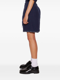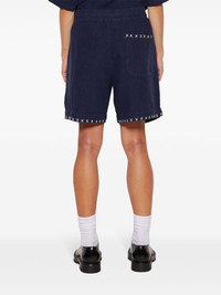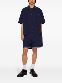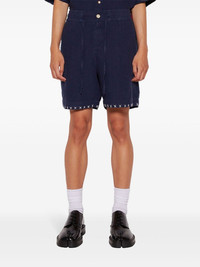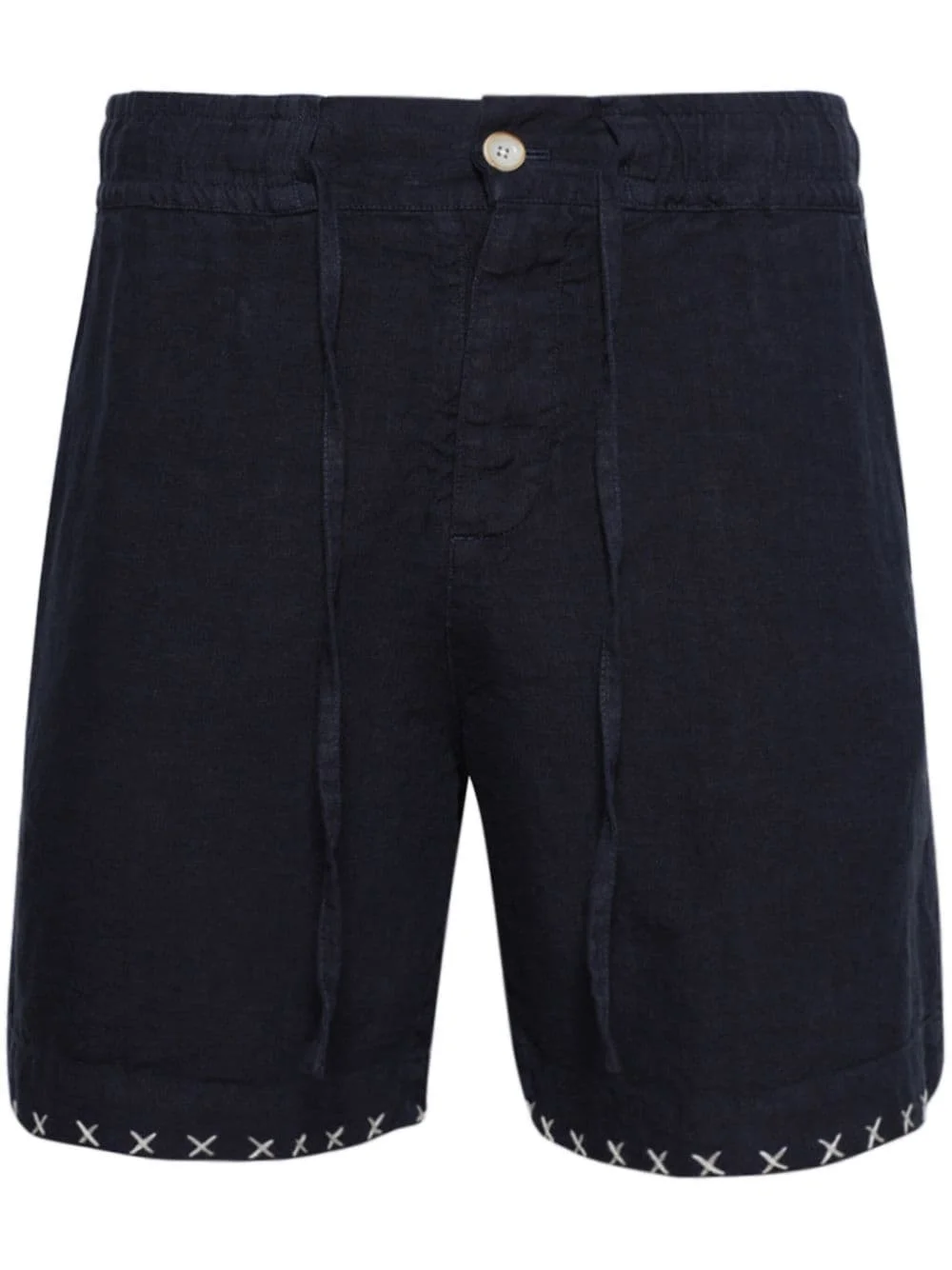 contrasting-stitch linen shorts Highlights - Navy blue - Linen/flax - Contrast stitching - Front button fastening - Drawstring fastening - Two side slit pockets - Rear flap pocket - Straight hem - Above-knee length Made in United States Composition Linen/Flax 100%