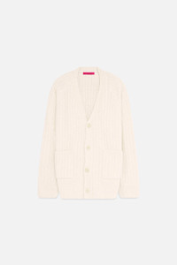 Relaxed cardigan in cashmere and silk with a ribbed boucle texture. Relaxed cardigan in cashmere and silk with a ribbed boucle texture. Details - 80% Cashmere, 20% Silk - Relaxed fit - Made in US
