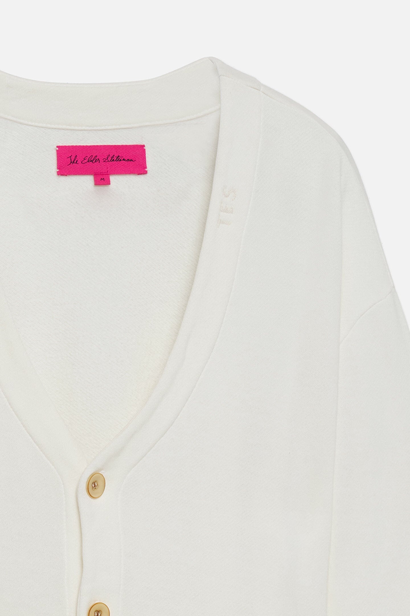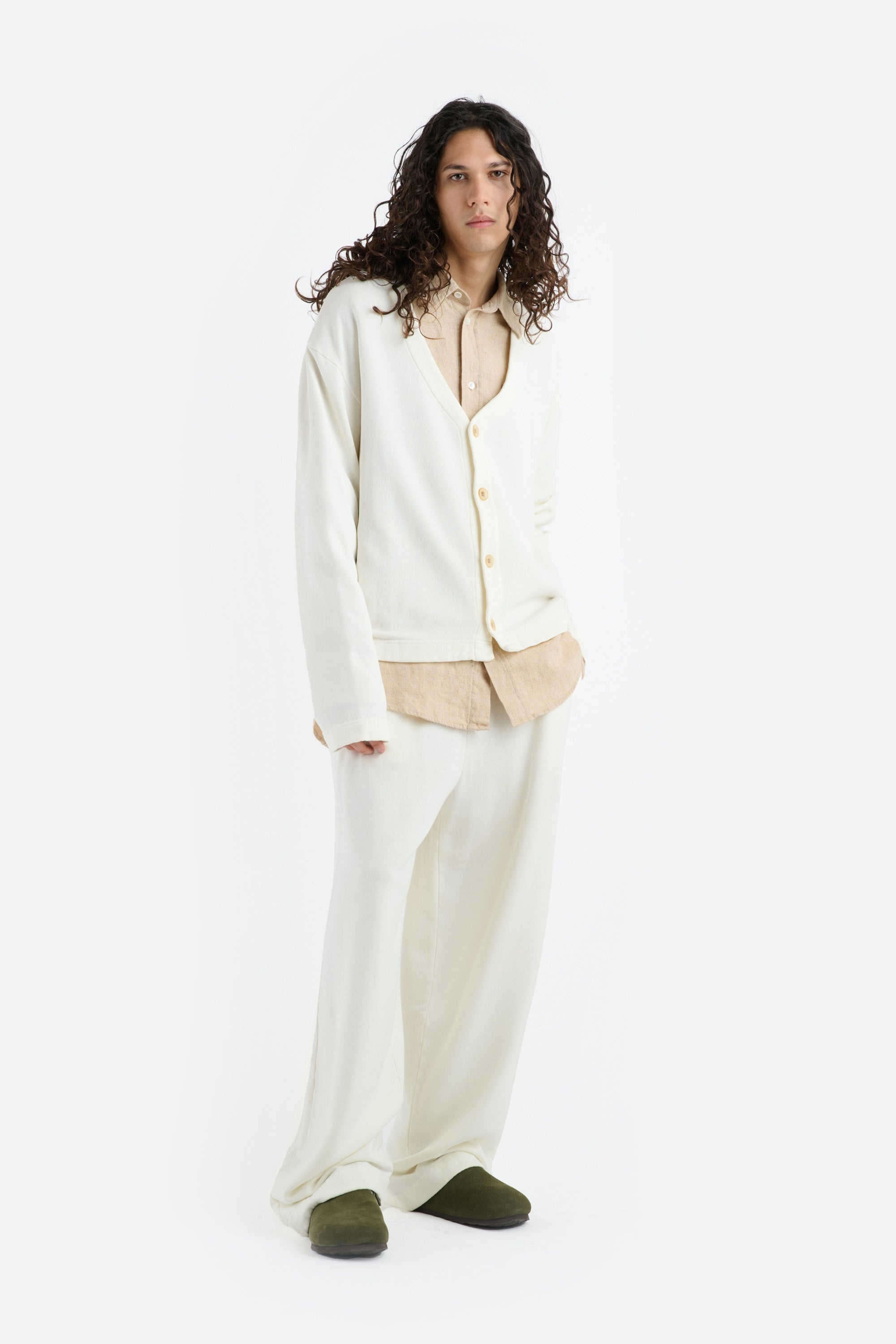 THE DAILY GROUP IS FOCUSED ON PIECES THAT CAN BE WORN EVERY DAY, YEAR-ROUND, AND ARE EASY TO CARE FOR. MADE IN LOS ANGELES, THE DAILY CARDIGAN IS MADE OF A COTTON AND CASHMERE BLEND WITH A SOFT VINTAGE HAND-FEEL. - OFF WHITE COTTON AND CASHMERE - RELAXED FIT - 4 BUTTON CLOSURE - DOUBLE NEEDLE STITCH AT CUFF AND HEM - MADE IN LOS ANGELES, CALIFORNIA - MODEL IS WEARING A SIZE MEDIUM SIZE GUIDE MATERIAL & CARE - 96% COTTON, 4% CASHMERE - THE ELDER STATESMAN'S - COTTON-CASHMERE DAILY CARE - WE RECOMMEND MACHINE WASHING IN COLD WATER WITH SIMILAR COLORS OR IDENTICAL COLORS ONLY, THEN TUMBLE DRY ON A LOW SETTING. IRON ON LOW-TEMPERATURE OR DRY CLEAN. - PLEASE DO NOT BLEACH - FRAYING MAY OCCUR DUE TO THE NATURE OF THE YARN. PLEASE USE CLOTHING SHAVERS THAT ARE DESIGNED FOR COTTON AND CASHMERE. - TO STORE OUT-OF-SEASON GARMENTS, USE ANY GARMENT STORAGE TO AVOID DUST AND PESTS - AVOID DIRECT SUNLIGHT TO PRESERVE THE COLOR SIZE & FIT - MODEL IS 6’3” WITH A 25.5” WAIST WEARING A SIZE MEDIUM - BODY LENGTH 25 1/2“ - ACROSS SHOULDER 22 1/2“ - CHEST 22 1/2“ - SLEEVE LENGTH 24“