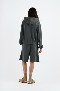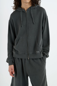 THE DAILY GROUP IS FOCUSED ON PIECES THAT CAN BE WORN EVERY DAY, YEAR-ROUND, AND ARE EASY TO CARE FOR. MADE IN LOS ANGELES, THE DAILY ZIP HOODIE IS MADE OF A COTTON AND CASHMERE BLEND WITH A SOFT VINTAGE HAND-FEEL. - COAL COTTON AND CASHMERE - RELAXED CROPPED FIT - TWISTED CASHMERE DRAWCORD - 2-WAY ZIPPER - RIBBED AT CUFF AND HEM - 2 FRONT POCKETS - MADE IN LOS ANGELES, CALIFORNIA - MODEL IS WEARING A SIZE MEDIUM SIZE GUIDE MATERIAL & CARE - 96% COTTON, 4% CASHMERE - THE ELDER STATESMAN'S - COTTON-CASHMERE DAILY CARE - WE RECOMMEND MACHINE WASHING IN COLD WATER WITH SIMILAR COLORS OR IDENTICAL COLORS ONLY, THEN TUMBLE DRY ON A LOW SETTING. IRON ON LOW-TEMPERATURE OR DRY CLEAN. - PLEASE DO NOT BLEACH - FRAYING MAY OCCUR DUE TO THE NATURE OF THE YARN. PLEASE USE CLOTHING SHAVERS THAT ARE DESIGNED FOR COTTON AND CASHMERE. - TO STORE OUT-OF-SEASON GARMENTS, USE ANY GARMENT STORAGE TO AVOID DUST AND PESTS - AVOID DIRECT SUNLIGHT TO PRESERVE THE COLOR SIZE & FIT - MODEL IS 6’3” WITH A 25.5” WAIST WEARING A SIZE MEDIUM - BODY LENGTH 24“ - ACROSS SHOULDER 22“ - CHEST 23“ - SLEEVE LENGTH 24 1/2“