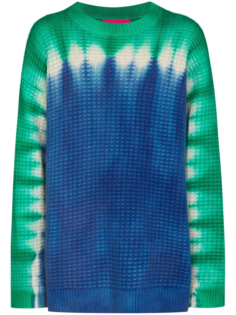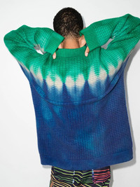 Daybreak tie-dye waffle jumper Specialized in knitwear with a contemporary approach to design, The Elder Statesman's AW21 collection features the Daybreak jumper, woven from soft cashmere in a waffle-effect knit and boasting a tie-dye print in a dark green and blue colourway. Made in United States Composition Cashmere 100% Washing instructions Dry Clean Only