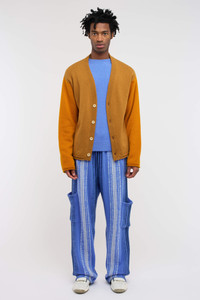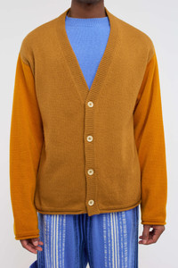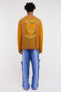 ARTIST OZZIE WRIGHT'S PSYCHEDELIC AND LIGHTHEARTED IMAGERY IS FEATURED ON OUR SEASONAL SWEATERS WITH INTARSIAS. HIS WORKS ARE INSPIRED BY PUNK SURF CULTURE OF THE EARLY 90'S. THE LOVE AND ALIENS CARDIGAN IS MADE OF THE SOFTEST HEAVY WEIGHT CASHMERE FROM ITALY. SHIP BY 6/6 - BROWN, ORANGE AND YELLOW CASHMERE - RELAXED FIT - FRONT BUTTON CLOSURE - LONG SLEEVE - RIBBED HEM INTO ROLL EDGE - MADE IN LOS ANGELES, CALIFORNIA - MODEL IS WEARING A SIZE MEDIUM MATERIAL & CARE - 100% CASHMERE - HEAVY WEIGHT KNIT - THE ELDER STATESMAN'S - FULLY FASHION KNITWEAR CARE - WE RECOMMEND DRY CLEAN ONLY - TO MAINTAIN ITS ORIGINAL SHAPE PLEASE FOLD THE GARMENT, AS HANGING KNITWEAR TENDS TO DISRUPT ITS GENUINE SILHOUETTE - PILLING MAY OCCUR DUE TO THE NATURE OF THE YARN. PLEASE USE CLOTHING SHAVERS THAT ARE DESIGNED FOR KNITWEAR & CASHMERE PILLING - TO AVOID EXCESS PILLING DO NOT PULL ANY PILLS ON THE GARMENT AND DO NOT TRY TO MANUALLY CLEAN A STAIN - STORE YOUR GARMENT IN A DRY, TEMPERATURE-CONTROLLED SPACE - TO STORE OUT-OF-SEASON GARMENTS, USE ANY KNITWEAR GARMENT STORAGE TO AVOID DUST AND PESTS - AVOID DIRECT SUNLIGHT TO PRESERVE THE COLOR SIZE & FIT - MODEL IS 6’3” WITH A 25.5” WAIST WEARING A SIZE MEDIUM - FRONT LENGTH 26 3/4" - ACROSS SHOULDER 20" - CHEST 23" - SLEEVE LENGTH 24 1/2"