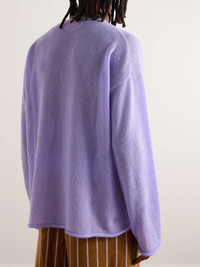 The Elder Statesman's collections are filled with slouchy styles like this sweater. It's made from a sumptuous blend of cashmere and cotton in a vibrant purple hue. The hem and cuffs are rolled, not ribbed, to emphasise the comfortable fit. Size & Fit - Fits true to size. Take your normal size - Designed for a relaxed fit - Dropped shoulder seam - Lightweight, open knit - Model is shown wearing a M - Model measures: chest 38"/ 96cm, height 6'0"/ 183cm Details & Care - Purple cashmere and cotton-blend - 63% cashmere, 37% cotton - Dry clean