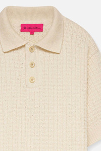 RELAXED SHORT-SLEEVE TOP IN COTTON WITH A CHECK STITCH, COLLAR, AND 3-BUTTON CLOSURE. SIZE GUIDE MATERIAL & CARE - - 100% COTTON - - RELAXED FIT - - MADE IN THE US FROM IMPORTED MATERIALS - - MODEL IS 6’3” WITH A 25.5” WAIST, WEARING A SIZE MEDIUM SIZE & FIT - HAND WASH IN COLD WATER, LAY FLAT TO DRY.