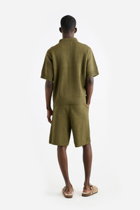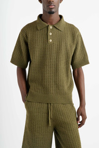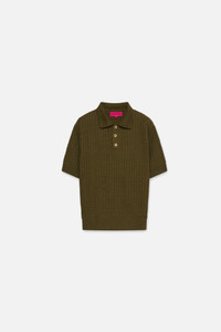 RELAXED SHORT-SLEEVE TOP IN COTTON WITH A CHECK STITCH, COLLAR, AND 3-BUTTON CLOSURE. SIZE GUIDE MATERIAL & CARE - - 100% COTTON - - RELAXED FIT - - MADE IN THE US FROM IMPORTED MATERIALS - - MODEL IS 6’3” WITH A 25.5” WAIST, WEARING A SIZE MEDIUM SIZE & FIT - HAND WASH IN COLD WATER, LAY FLAT TO DRY.
