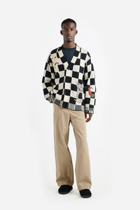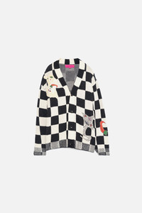 RELAXED V-NECK CARDIGAN IN COTTON WITH A CHECKERED PATTERN AND PLAYFUL ABSTRACT MOTIFS. ARTWORK ILLUSTRATED BY THE STUDENTS OF LESLY PIERRE PAUL’S NEW VISION CHILDREN’S ART SCHOOL IN PORT-AU-PRINCE, HAITI. A PORTION OF THE PROCEEDS FROM THIS COLLECTION WILL BE DONATED TO NEW VISION CHILDREN’S ART SCHOOL, SUPPORTING ITS CONTINUED MISSION TO FOSTER CREATIVITY AND OPPORTUNITY FOR YOUNG ARTISTS IN HAITI. SIZE GUIDE SIZE & FIT - DRY CLEAN ONLY.
