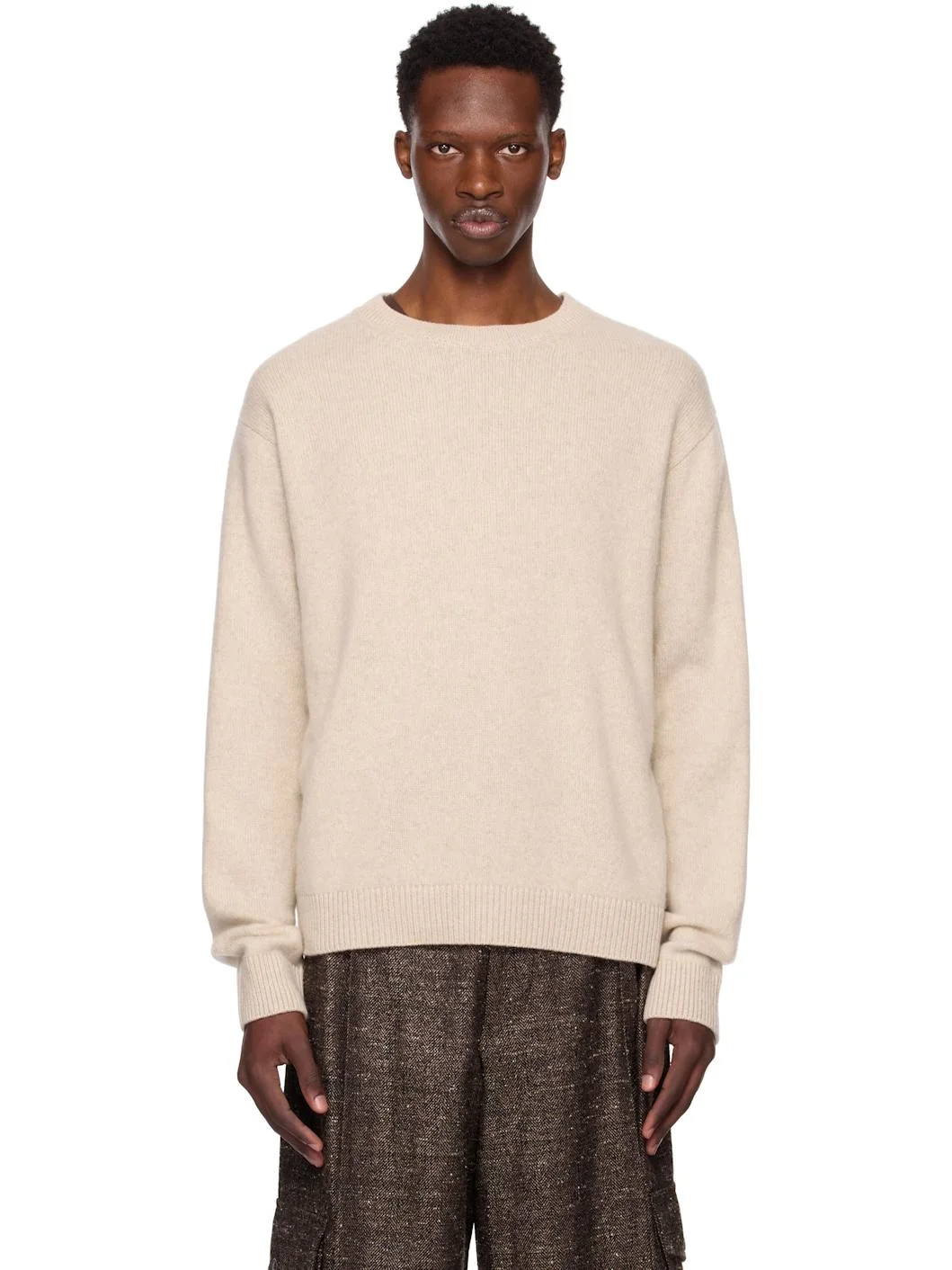 Hand-knit cashmere sweater. · Heavyweight · Rib-knit crewneck, hem, and cuffs · Dropped shoulders Supplier color: White 100% cashmere. Made in United States 252014M201006