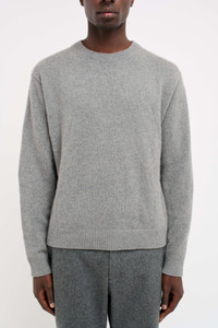 OUR CLASSIC (AND BELOVED) SIMPLE CREW IN HEAVYWEIGHT KNIT. MADE IN LOS ANGELES WITH HAND-POWERED KNITTING MACHINES, THIS CREWNECK IS MADE WITH THE SOFTEST ITALIAN CASHMERE. - LIGHT GREY CASHMERE - RELAXED FIT - STANDARD CREWNECK COLLAR - LONG SLEEVES - RIBBED HEM, NECKLINE & CUFF - MADE IN LOS ANGELES, CALIFORNIA MATERIAL & CARE - 100% CASHMERE - HEAVY-WEIGHT KNIT - THE ELDER STATESMAN'S - FULLY FASHIONED KNITWEAR CARE - WE RECOMMEND DRY CLEAN ONLY - TO MAINTAIN ITS ORIGINAL SHAPE PLEASE FOLD THE GARMENT, AS HANGING KNITWEAR TENDS TO DISRUPT ITS GENUINE SILHOUETTE - PILLING MAY OCCUR DUE TO THE NATURE OF THE YARN. PLEASE USE CLOTHING SHAVERS THAT ARE DESIGNED FOR KNITWEAR & CASHMERE PILLING - TO AVOID EXCESS PILLING DO NOT PULL ANY PILLS ON THE GARMENT AND DO NOT TRY TO MANUALLY CLEAN A STAIN - STORE YOUR GARMENT IN A DRY, TEMPERATURE-CONTROLLED SPACE - TO STORE OUT-OF-SEASON GARMENTS, USE ANY KNITWEAR GARMENT STORAGE TO AVOID DUST AND PESTS - AVOID DIRECT SUNLIGHT TO PRESERVE THE COLOR SIZE & FIT - MEASUREMENTS FOR A MEDIUM-SIZED SIMPLE CREW - FRONT TORSO LENGTH 26" - ACROSS SHOULDER 19" - CHEST 23 3/4" - BOTTOM OPENING 19" - SLEEVE LENGTH 26"