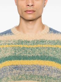 striped jumper Highlights - Cerulean blue/multicolour - Alpaca wool - Chunky knit - Brushed finish - Horizontal stripe pattern - Crew neck - Long sleeves - Straight hem Made in United States Composition Cashmere 61%, Silk 23%, Alpaca Wool 16% SIZE & FIT Model measurements Height 6 ft 1 in(1.85 m) Bust/Chest 35.82 in(91 cm) Hips 37.79 in(96 cm) Waist 29.13 in(74 cm) FittingInformation Designed for a relaxed fit, this piece allows for comfort and movement when worn Made with a midweight knit, this piece offers some stretch This piece fits true to size – take your usual size