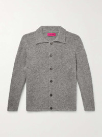 The Elder Statesman’s ‘Thistle’ cardigan is knitted with wool and alpaca yarns prized for their longevity and soft handle. It has a wide collar and fastens with glossy mother-of-pearl buttons. Size & Fit - Fits true to size. Take your normal size - Designed for a relaxed fit - Mid-weight knit - Model is shown wearing a M - Model measures: chest 38"/ 96cm, height 6'1"/ 185cm Details & Care - Light-grey melange alpaca-blend - Button fastenings - 74% alpaca, 22% wool, 4% polyamide - Dry clean - Mother-of-pearl: China