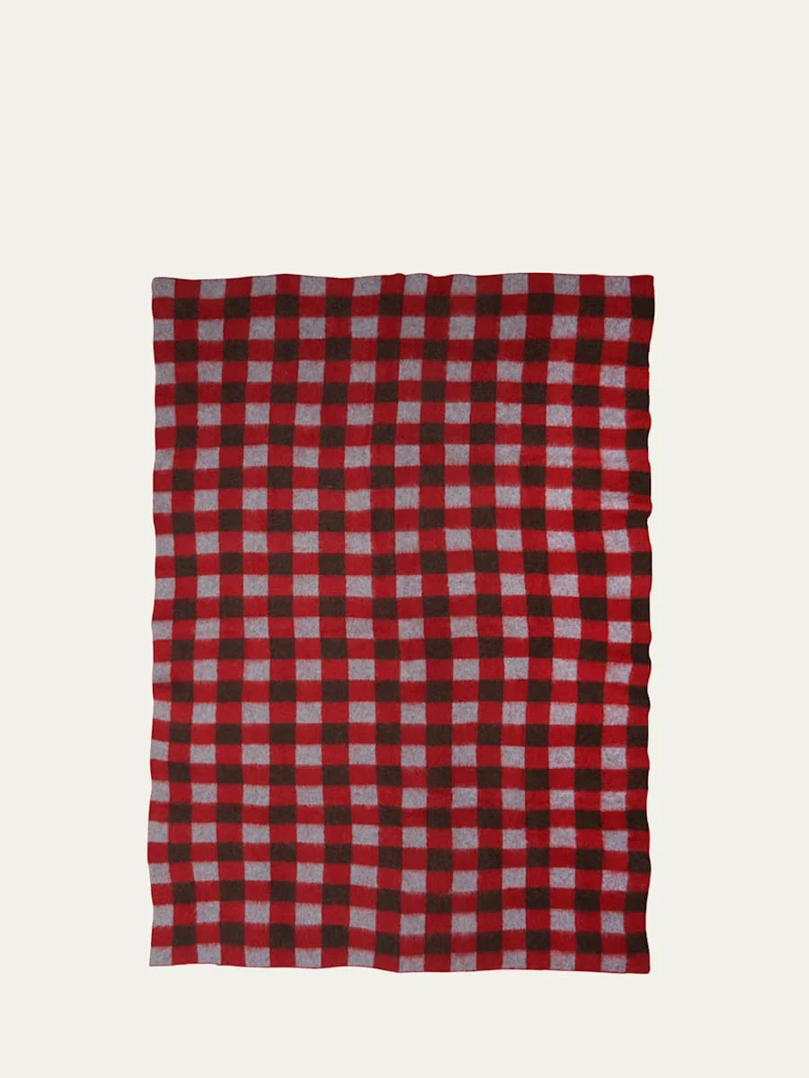 This silky, plush gingham blanket is incredibly lightweight and warm, making it perfect for cozying up on the couch during cold winter nights. Handcrafted of Suri alpaca, merino wool, and nylon Suri alpaca is the finest alpaca yarn renowned for its straight, long, and flat fiber that resembles silk Approx. 100"L x 60"W Dry clean Made in Peru