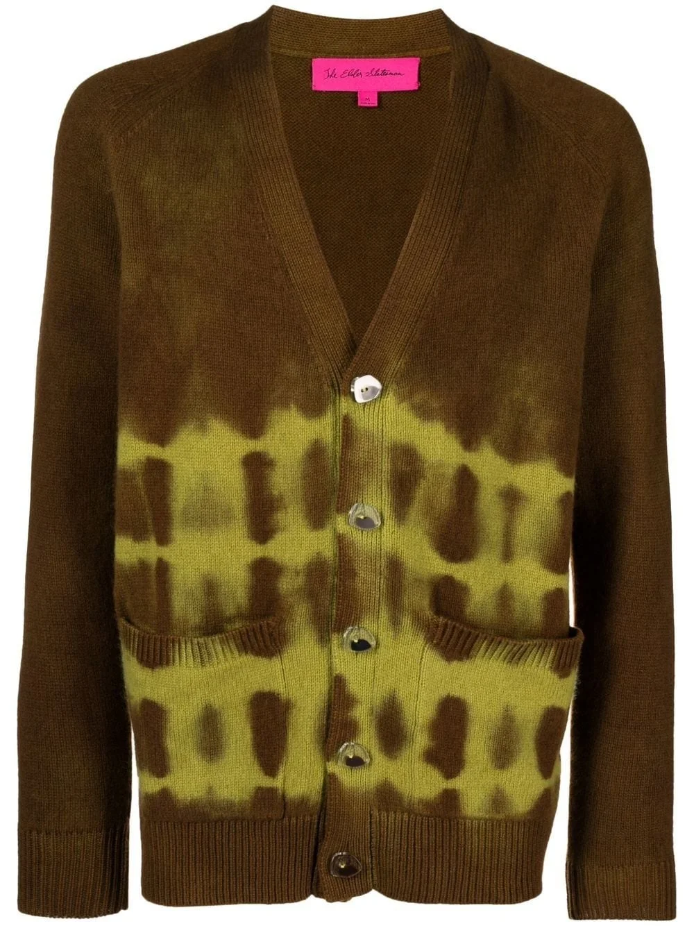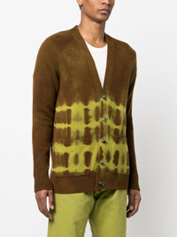 tie-dye print cashmere cardigan Highlights - Brown/green - Cashmere - Fine knit - Tie-dye print - Two front patch pockets - Front button fastening - V-neck - Long sleeves - Ribbed cuffs - Ribbed hem Made in United States Composition Cashmere 100% SIZE & FIT Model measurements Height 6 ft 2 in(1.87 m) Bust/Chest 37 in(94 cm) Hips 33.85 in(86 cm) Waist 27.95 in(71 cm) FittingInformation This piece fits true to size. We recommend you get your regular size Cut for a slim fit Made with a mid-weight fabric Measurement CHEST 44.01 in(111.8 cm) SLEEVE LENGTH 25.98 in(66 cm) LENGTH 26.49 in(67.3 cm) WAIST 35.98 in(91.4 cm) Shoulder Width 17 in(43.2 cm) Washing instructions Dry Clean Only