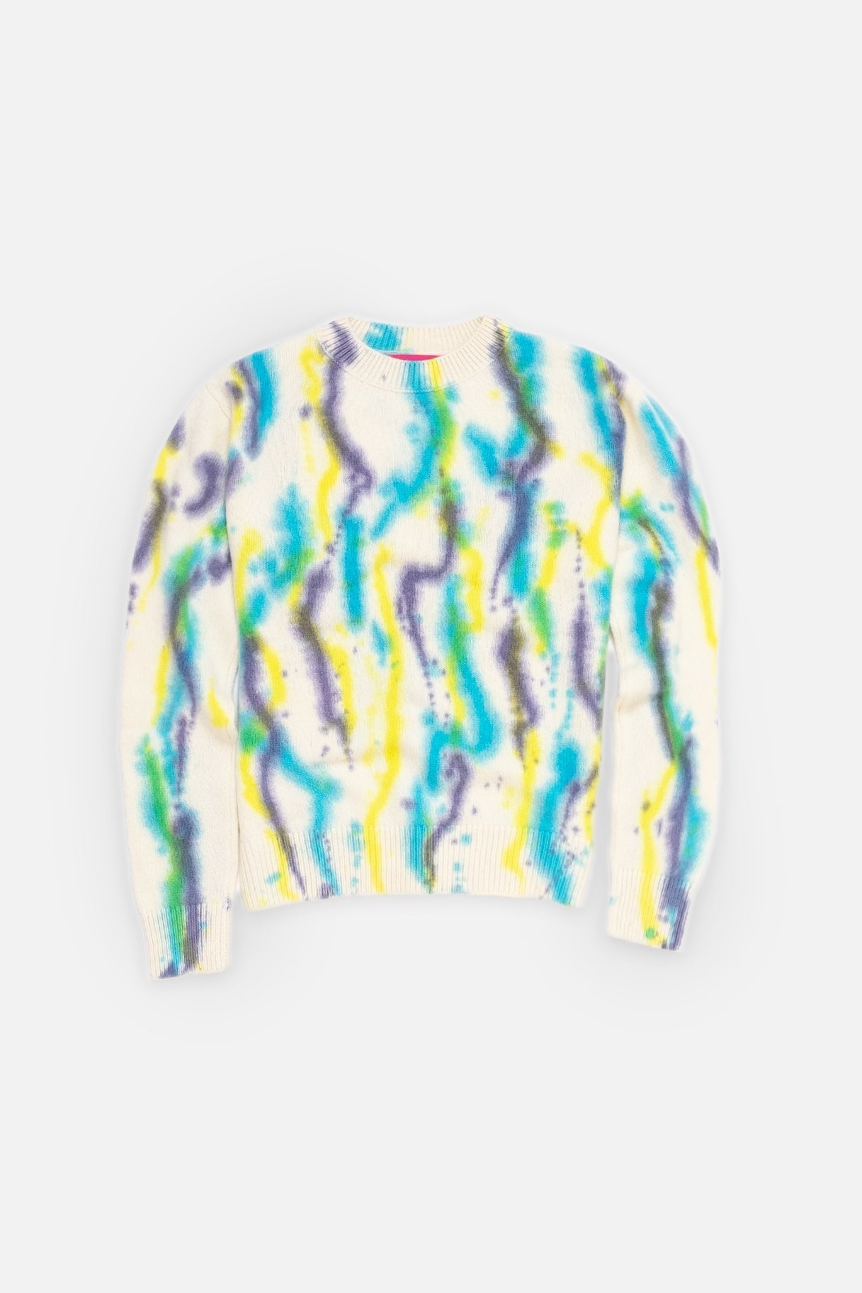 THE WATERCOLOR CREW IS MADE OF 100% CASHMERE IN A HEAVYWEIGHT KNIT. MADE IN LOS ANGELES WITH HAND-POWERED KNITTING MACHINES, THIS STYLE FEATURES A HAND DYED WATERCOLOR PATTERN. MATERIAL & CARE 100% CASHMERE HEAVY-WEIGHT KNIT • DRY CLEAN ONLY • DO NOT PULL ANY PILLS ON THE GARMENT • USE CLOTHING SHAVERS THAT ARE DESIGNED FOR CASHMERE PILLING • STORE YOUR GARMENT IN A DRY, TEMPERATURE-CONTROLLED ROOM • TO STORE OUT-OF-SEASON GARMENTS, USE A SWEATER STORAGE BAG TO AVOID DUST AND PESTS • AVOID DIRECT SUNLIGHT TO PRESERVE THE COLOR SIZE & FIT JOE IS 6’2’’ WITH A 30’’ WAIST WEARING A SIZE MEDIUM FLORA IS 5’9’’ WITH A 23” WAIST AND 30” BUST WEARING A SIZE MEDIUM