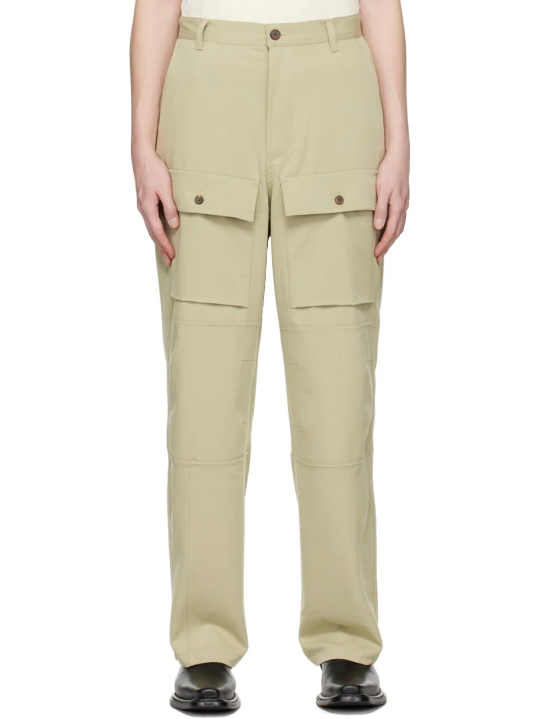 Relaxed-fit lightweight stretch polyester-blend twill cargo pants. · Belt loops · Four-pocket styling · Zip-fly · Flap pockets at front · Darts at knees · Horn hardware Supplier color: Slate green 78% polyester, 17% rayon, 5% spandex. Made in South Korea 231115M188005