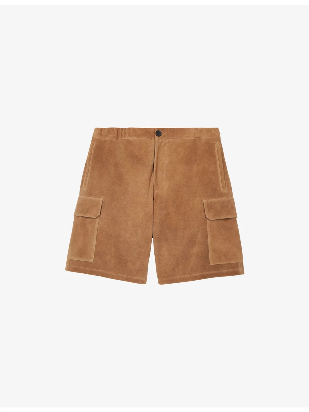 PRODUCT DETAILS - The Kooples suede shorts - 100% suede - Button and zip-fly fastening - Regular fit, straight leg, elasticated panel at waist, side pockets, leg pockets - Specialist leather clean - True to size - Heavyweight, non-stretch Ref: R04596404