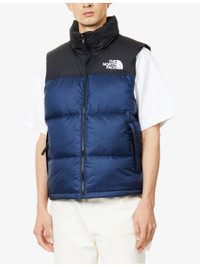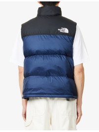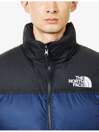 PRODUCT DETAILS - The North Face shell-down vest - 100% nylon; filling 80% down, 20% feathers; lining 100% nylon - Exposed zip fastening at front - Relaxed fit high-neck, concealed hood, sleeveless, two zip pockets at front, brand embroidery and contrast panel at front and back, all-over quilted and padded, fully lined, drawstring hem - Machine wash at 40°C - Size medium: length 25in / 64cm, chest 46in / 117cm - Model is 6ft 2in/1.88m and wears a size medium - Midweight, slight stretch Ref: R04488064