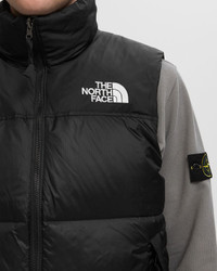 The 1996 Retro Nuptse Down Vest has a boxy silhouette, a shiny ripstop fabric, an exposed zipper, and slanted pockets - and, of course, the iconic oversized chambers. Compared to the '90s models, though, this version features 700-fill down from responsible sources and a water-repellent finish. Conveniently, the hood stows in the collar and the entire vest can be packed up and stowed in the right pocket. - 700-fillpower goose down provides warmth and is extremely compressible - Handwarmer pockets with security zipper - Drawcord hem for adjustment - Original light-appearing ripstop fabric for better durability Article Number: NF0A3JQQGOF1 Gender: Men Color: TNF BLACK/R Material: 100% Nylon