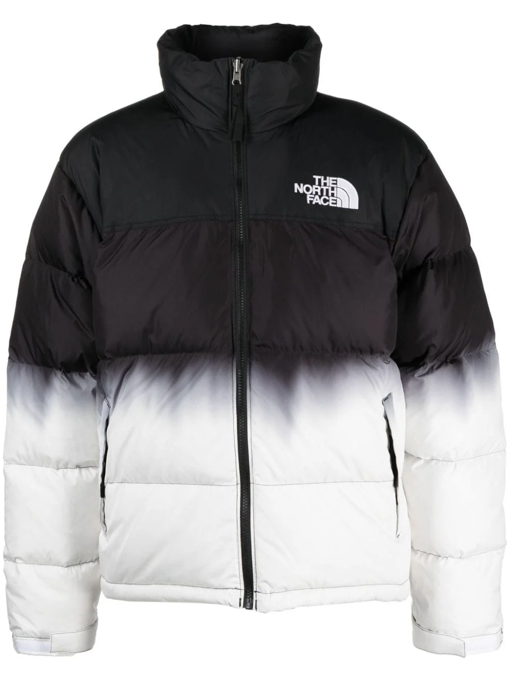 '96 Nuptse Dip Dye jacket The North Faceâs '96 Nuptse jacket is a fresh spin on an aughts icon. Itâs crafted from water-repellent shell with a monochrome dip-dye pattern. Itâs pack-away capabilities and recycled down fill hark to its functional alpine roots. Highlights - Black/white - Shell - Recycled down - Padded design - Quilted - Water-repellent finish - Dip-dye pattern - Outer pack-away pocket - Embroidered logo at the chest - Embroidered logo to the rear - Concealed hood - Front zip fastening - Long sleeves - Touch-strap cuffs - Two side zip-fastening pockets - Internal zip-fastening pocket - Drawstring hem - Full lining Imported Composition Outer: Polyester 100%, Nylon 100% Lining: Nylon 100%, Recycled Down 100%, Polyester 100% SIZE & FIT Model measurements Height 6 ft 3 in(1.9 m) Bust/Chest 36.2 in(92 cm) Hips 37.4 in(95 cm) Waist 28.3 in(72 cm) FittingInformation Designed for a regular fit, allowing for a comfortably loose fit throughout the body The internal drawstring at the hem allows for fitted preferences Made from a padded non-stretch fabric, giving it no natural elasticity This piece fits true to size – take your usual size