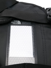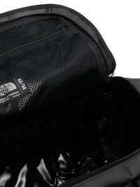 THE BASE CAMP DUFFEL IN BLACK FEATURES A DURABLE INTERLOCK WEAVE FOR LONG-LASTING USE. IT OFFERS VERSATILE CARRYING OPTIONS WITH TWO FLAT TOP HANDLES AND A PADDED ADJUSTABLE SHOULDER STRAP. THE FOLDOVER TOP SECURES YOUR BELONGINGS, COMPLEMENTED BY A LUGGAGE TAG AND EXPANDABLE SIDES FOR ADDED CAPACITY. PRACTICAL DETAILS INCLUDE A SIDE ZIP-FASTENING POCKET, A FLAT SIDE STRAP, AND A MAIN COMPARTMENT WITH A REMOVABLE POUCH AND INTERNAL MESH POCKET. FINISHED WITH A SUBTLE LOGO PRINT AND INTERNAL LOGO PATCH, THIS DUFFEL COMBINES EXPERT CRAFTSMANSHIP WITH FUNCTIONAL DESIGN FOR YOUR TRAVEL NEEDS.